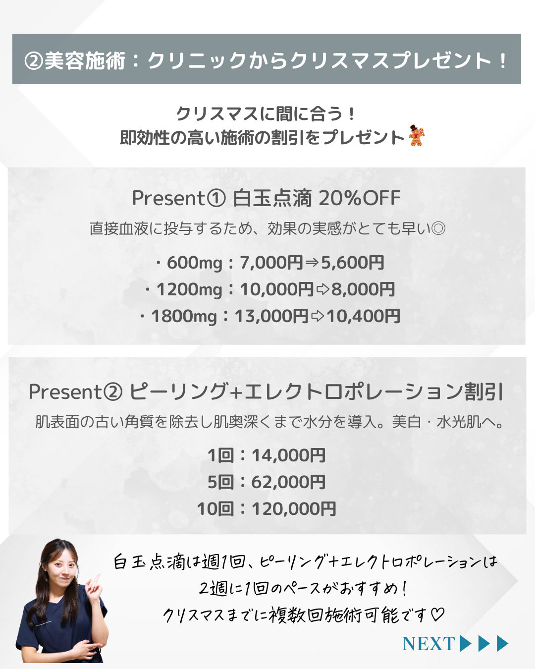 (2)白玉点滴20%OFF!&ピーリング+エレクトロ特別価格!