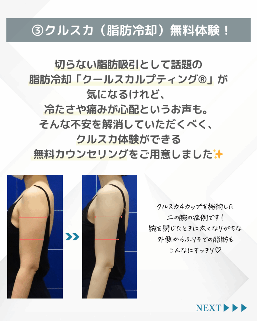 (3)クルスカ(脂肪冷却)無料体験!