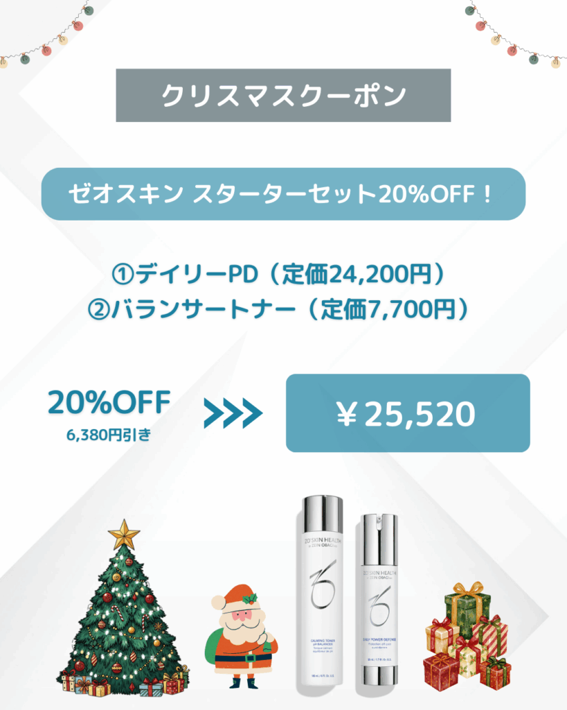 アステリアクリニックからのクリスマスプレゼントとして、有名なゼオスキンのスターターセットを特別価格でご用意しました⛄✨