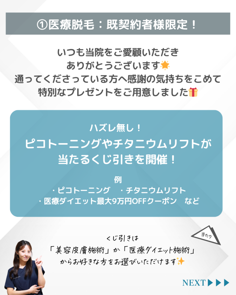 (1)医療脱毛:既契約者様限定!くじ引きキャンペーン◎