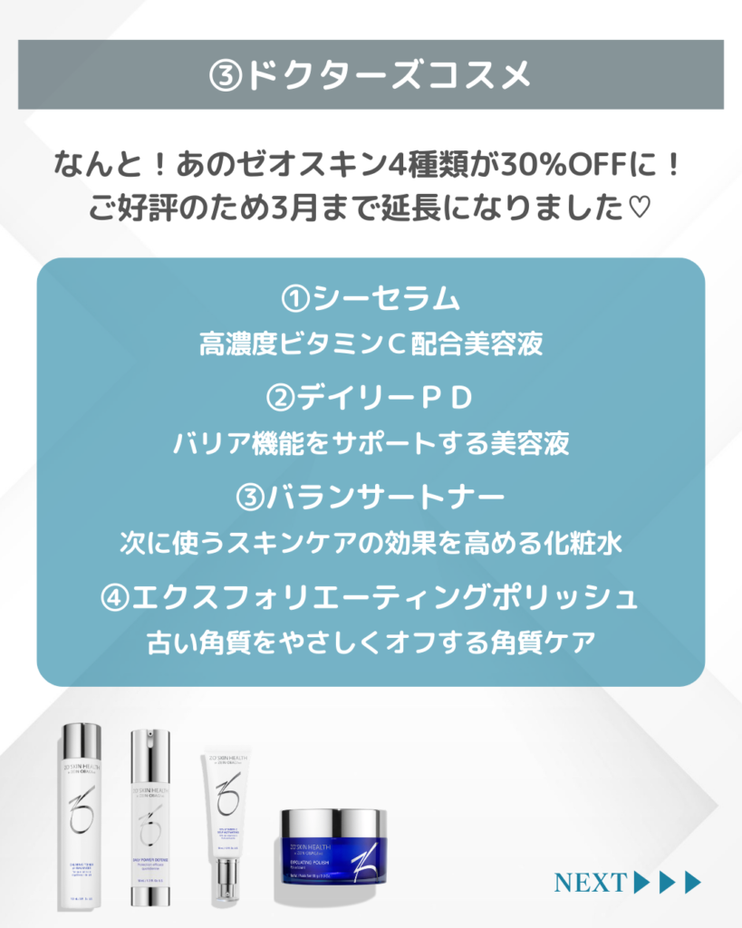 (3)ドクターズコスメ:ZOスキン30%OFF!